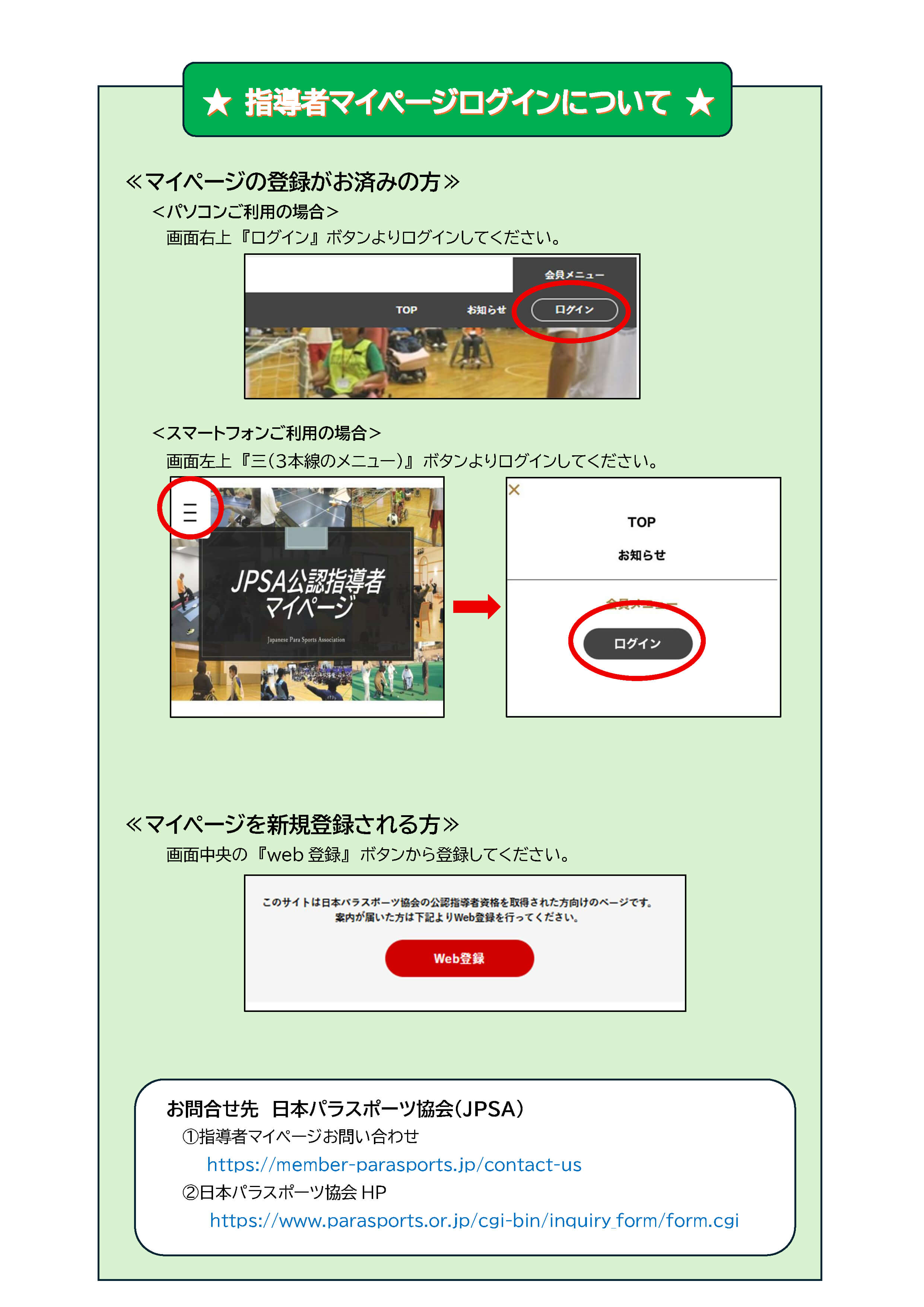 このサイトは日本パラスポーツ協会の公認指導者資格を取得された方向けのページです。