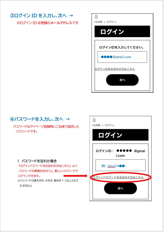 【スマートフォン】での マイページログイン手順について(WEB登録が完了している方)